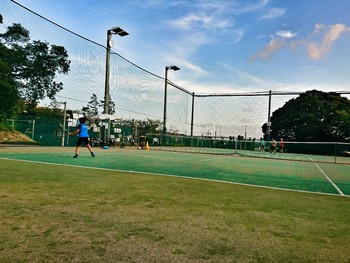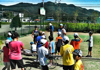 インドアでは黒木コーチがジュニアの研修を兼ねてフットワークのトレーニング。