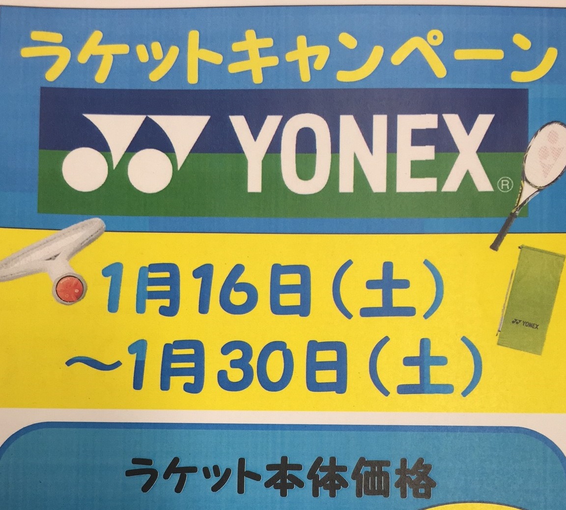 東急あざみ野テニスガーデンの横地です。ヽ( ̄ー ̄ )ノ アウトドアコートで1月16日〜1月30日までヨネックスのラケットキャンペーンを開催します!ヨロ(`・ω・´)スク! インドアでも開催してまーす!