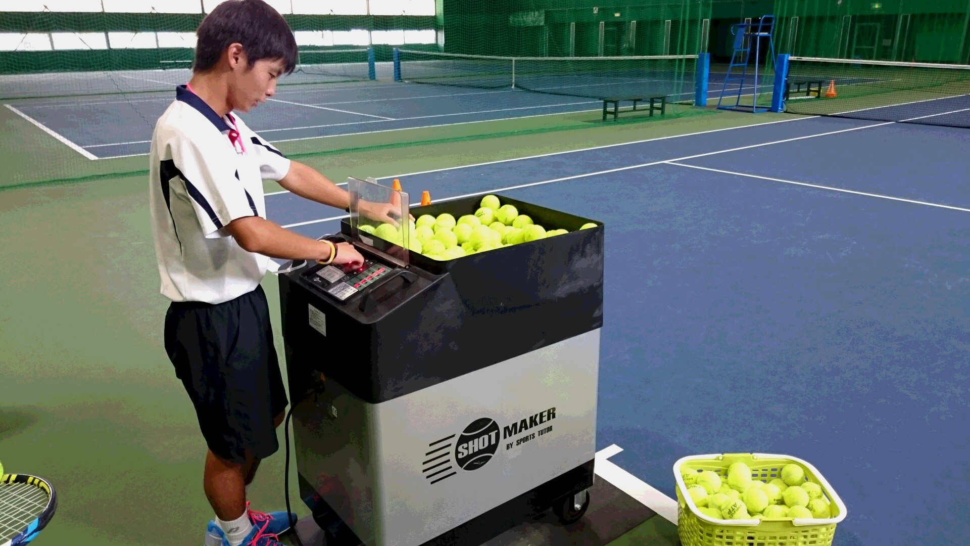 スーパーアシスタントコーチの球だしマシーン君に球を出してもらいストロークを撮影(*^^*)