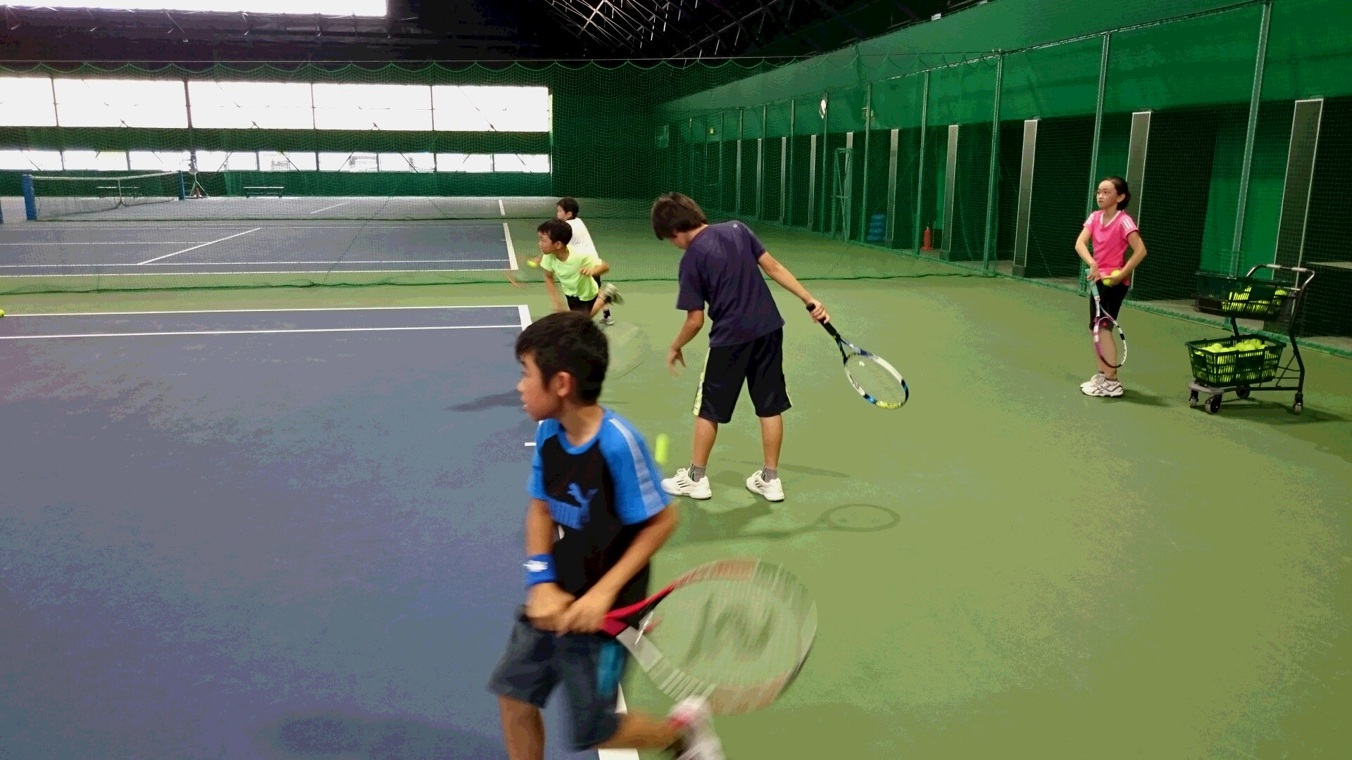 というわけで!?緊急企画!!全米オープンと同じコート、デコターフを体感しようという事であざみ野のJr.をつれて昭島市にある昭和の森テニスセンターへ行きました!!