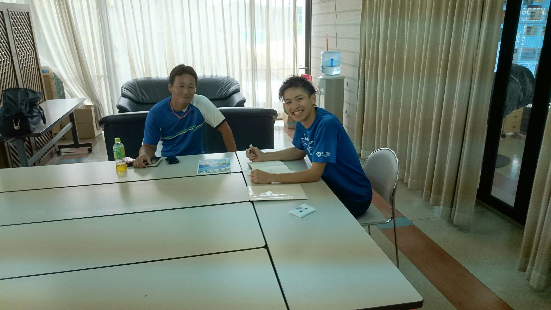 写真は、数々のタイトルを総ナメにした山本育史プロと練習内容の打ち合わせ。