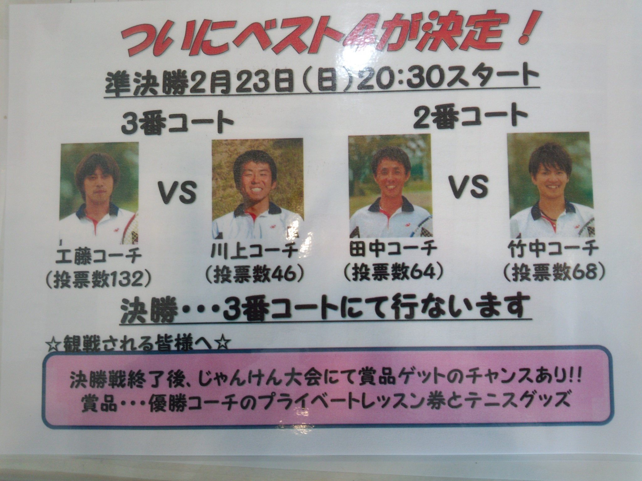 東急あざみ野テニスガーデンでは、2月23日(日)20:30~