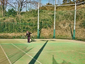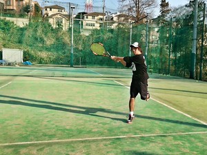 飯島コーチはバックハンドを球出しでチェック。当たりを変えたことでボールが延びるようになりました。