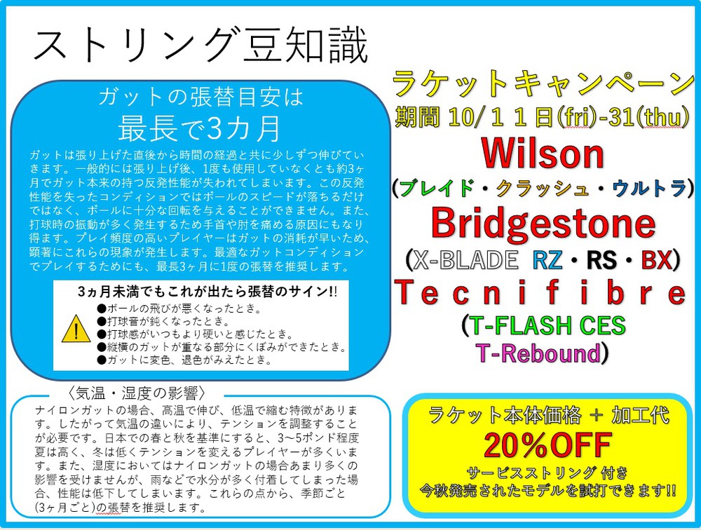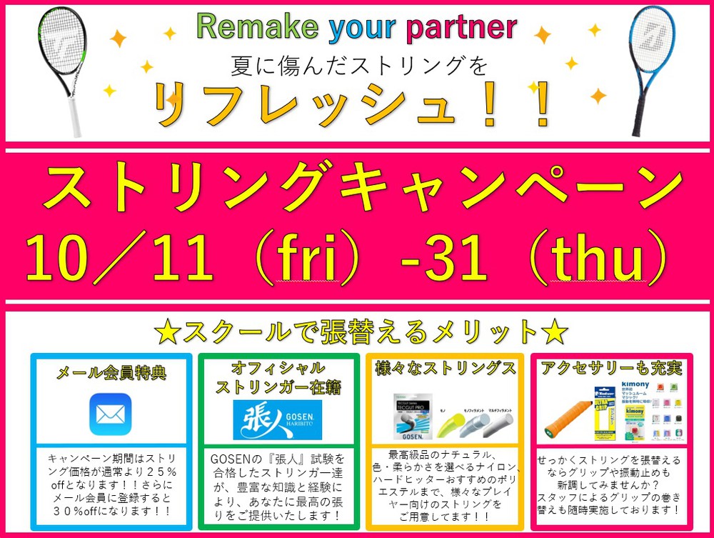 10月11日~31日までストリングキャンペーンを行っています!
