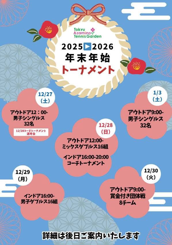 あざみ野テニスガーデンは12月26日(金)までがレギュラーレッスン。