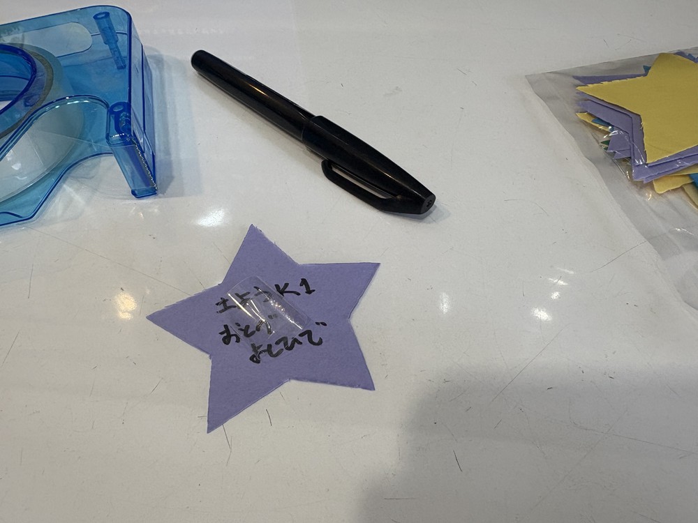 ③名前の書いた面にセロハンテープの輪っかを貼ろう!