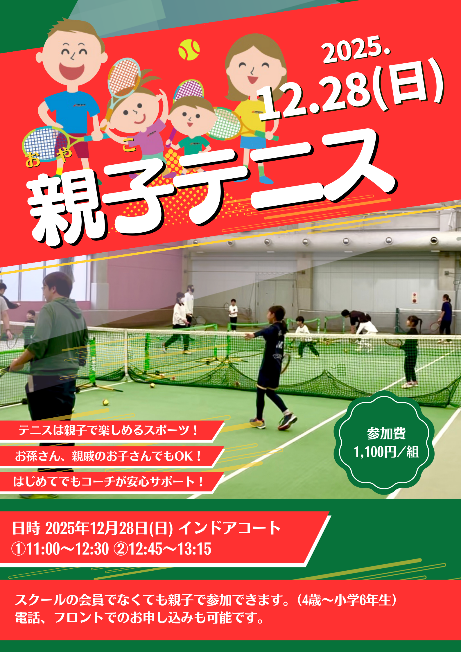 今年最後のテニスイベントに、お友達家族も誘って、みんなでテニスを楽しみましょう♬