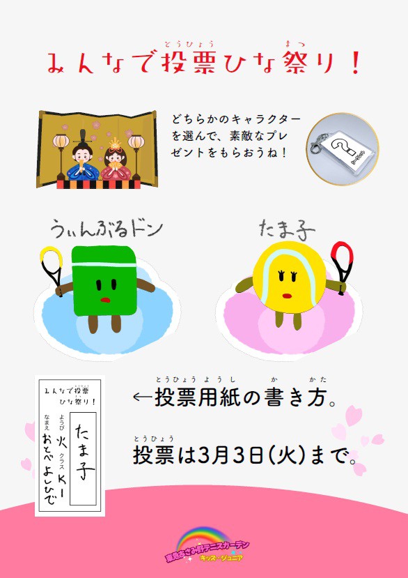 多く票を取ったキャラクターの中から、抽選で3名に「あざみ野テニスガーデンオリジナルキーホルダー」をプレゼントします。