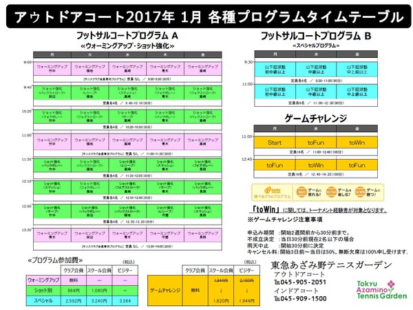 アウトドアコート2017年1月各種プログラムタイムテーブル