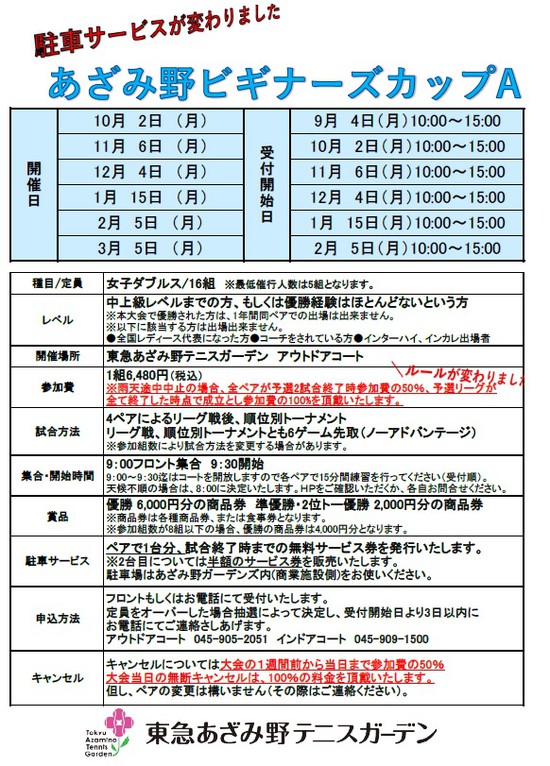 アウトドア月例女子ダブルス大会要項(2017下期)
