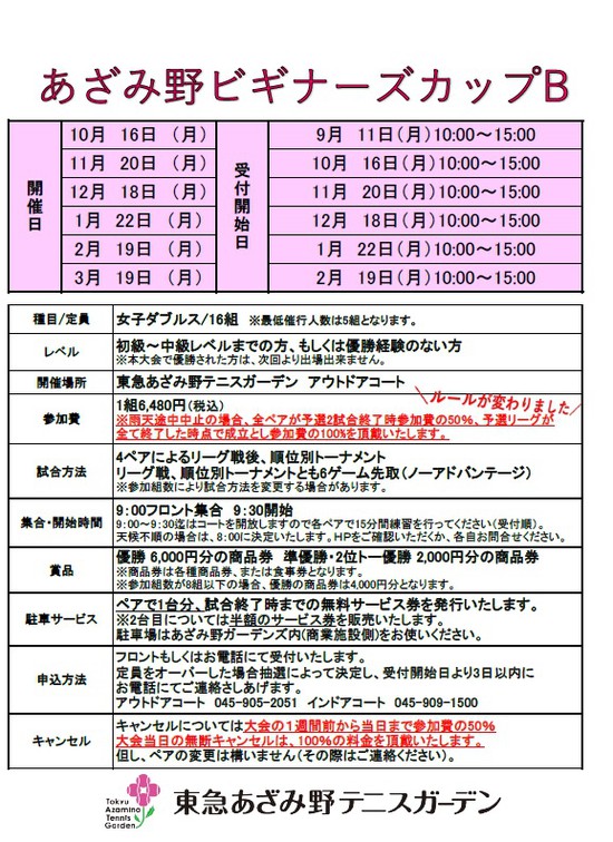 詳しくはこちら ⇒ ビギナーズカップB下期.pdf