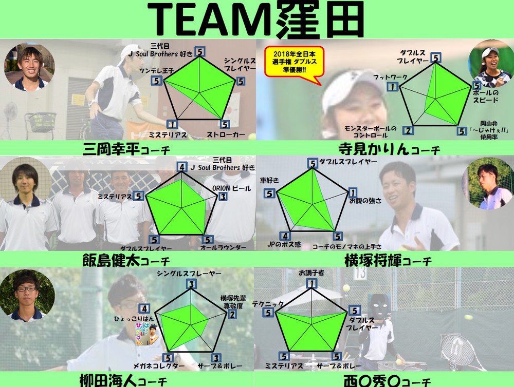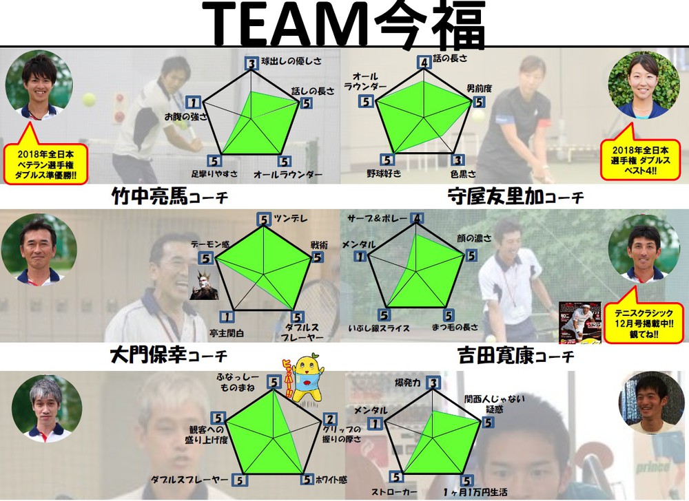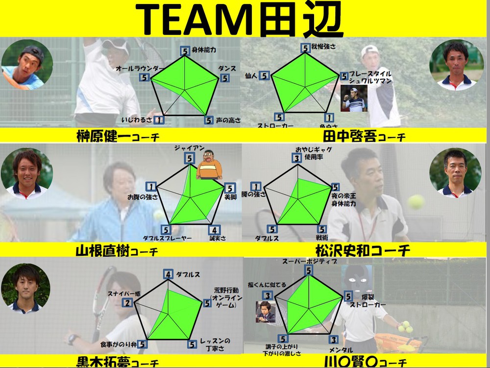 コーチ団体戦のチーム紹介(バロメーター表示)