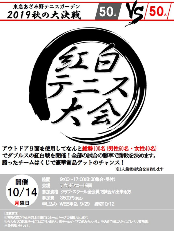 秋の紅白テニス大会のお知らせ(一般・ジュニア)