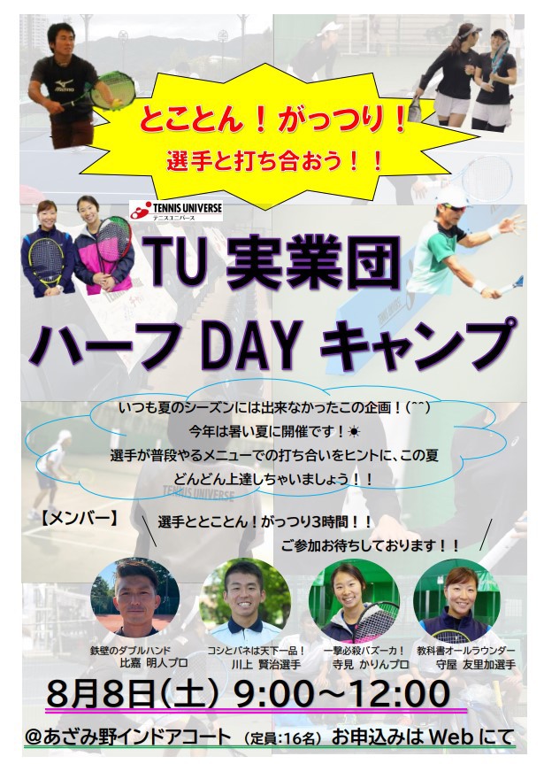8/8(土)TU実業団ハーフDAYキャンプ開催のお知らせ