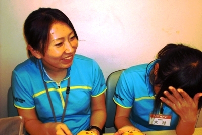 テニスコートでひたすらボールを追いかけた後、コーチ室に戻るとザバスが誇る女性コーチが休憩中に、なにやら楽しそうに山田コーチと大村コーチが女子会(*^_^*)