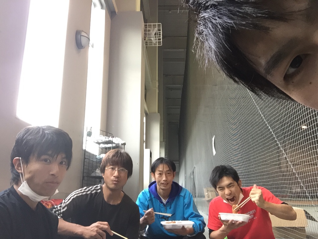 昼食は鳥のから揚げ弁当の大盛りを食べるザバス5人衆!!