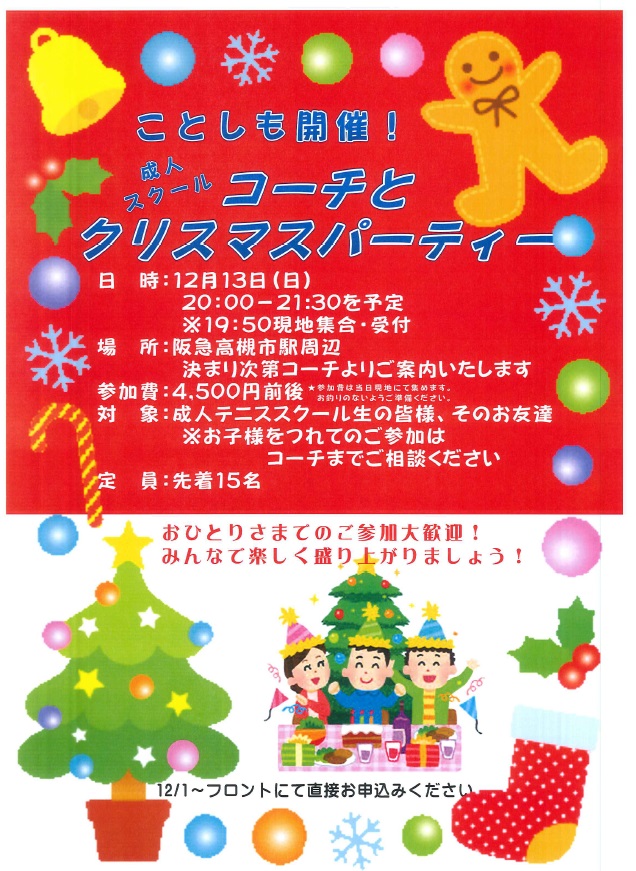13日(日)はクリスマスパーティーを開催します。