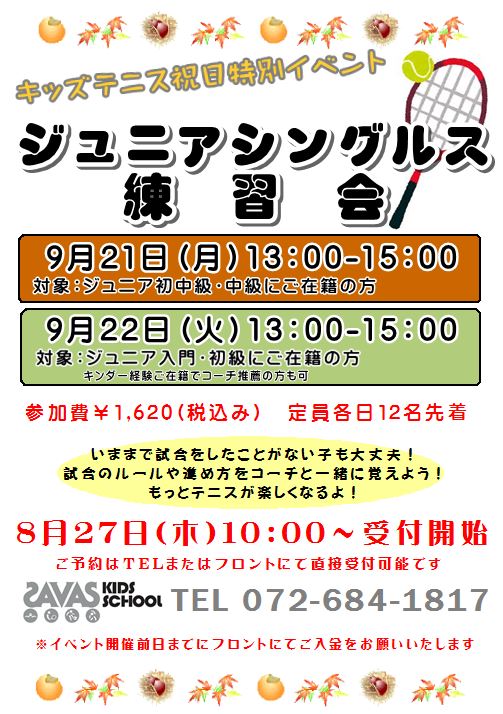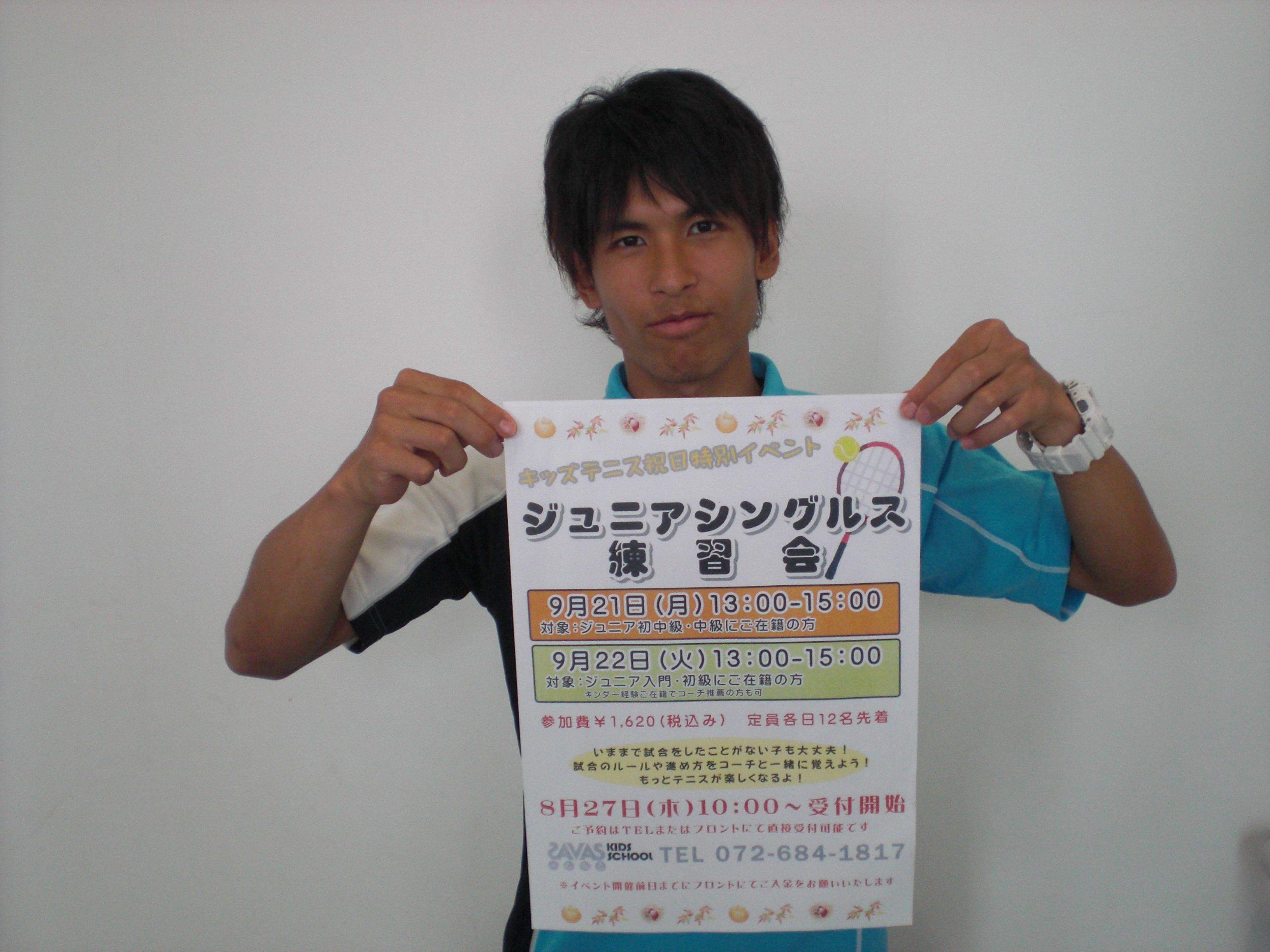 福田コーチが手にしているのは『ジュニアシングルス練習会』です。