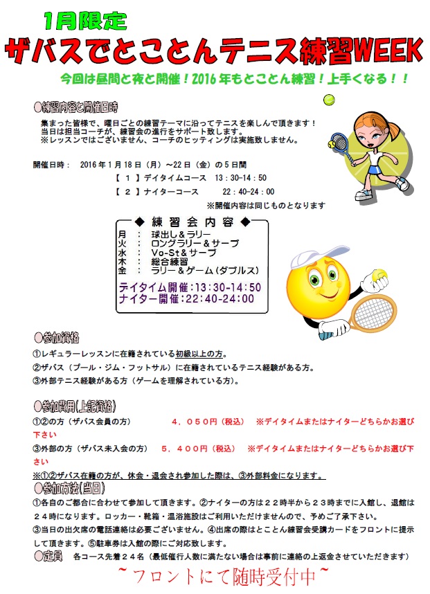 2016年1月18日(月)~22日(金)の5日間で『とことん練習WEEK』を企画しました。