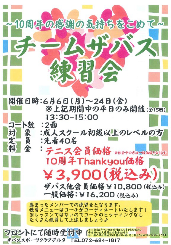 6月6日(月)から『チームザバス』の練習会が始まります。