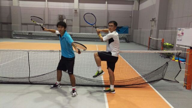 井筒コーチが翌日に片山コーチとダブルスの試合があるので・・・(^^♪