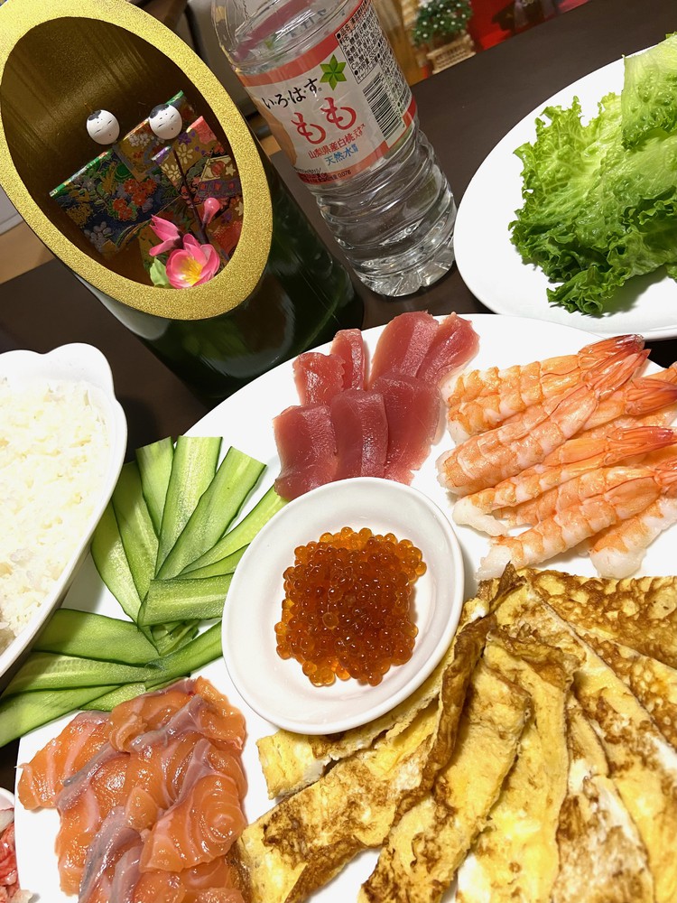 晩ごはんは子どもたちのチョイスで手巻き寿司でした(^_−)−☆