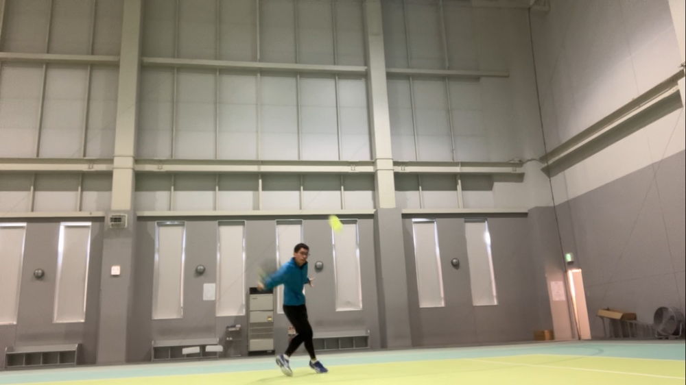 ↓バックハンドスライスのアプローチ打ってるシーン