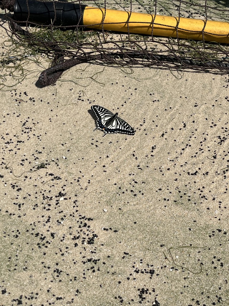先日テニスをやっいると、そこでなんとコートに蝶々が!!