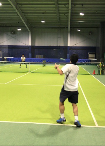 足元に沈めて、浮いてきたチャンスボールをポーチ、又は打ち込んでポイントを積極的に奪いに行きたいと思います。