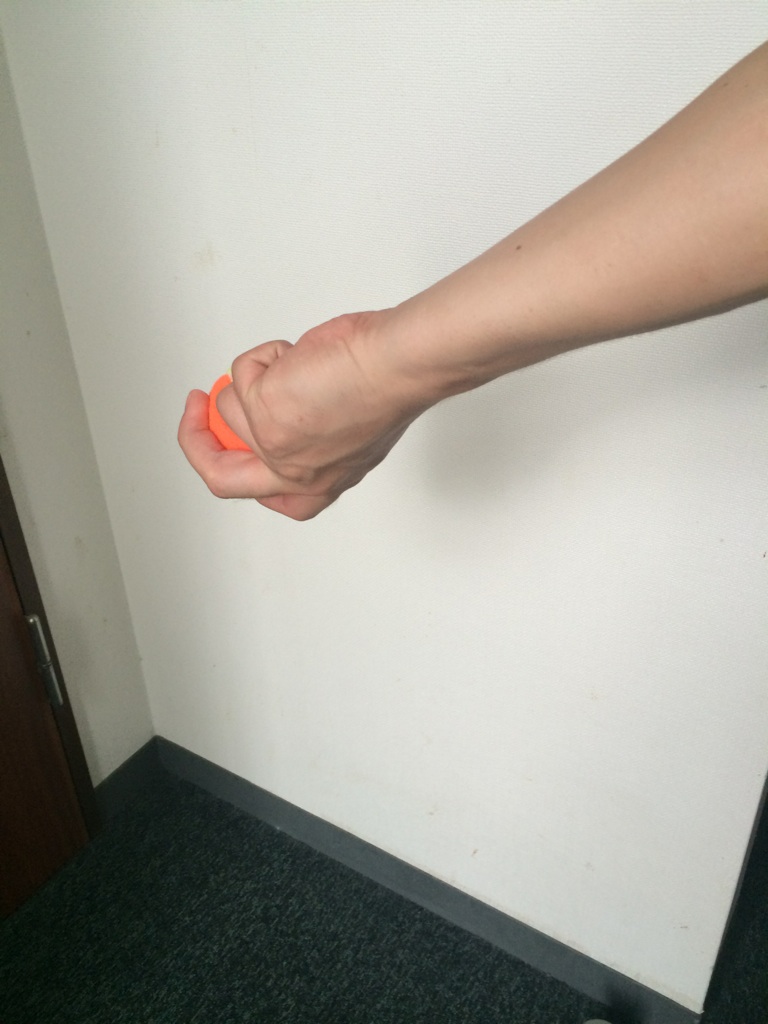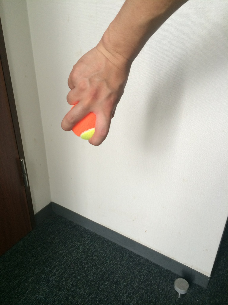 ボールを持ってみてボールが回転するように動かす動作をしてみます