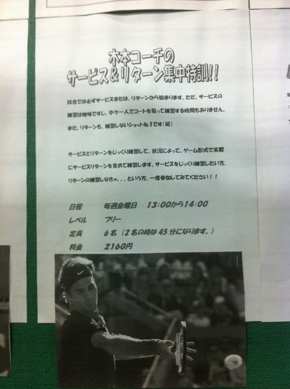 金曜日の午前中に新しく企画レッスン作りました。ネットプレーの月にもストロークをやりたい方、サーブ、リターンを練習したい方、お待ちしてます!