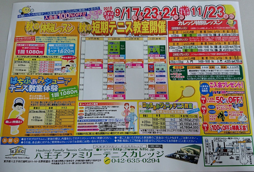 八王子ファミリーテニスカレッジでは、9月23日(日)に特別レッスンがあります。
