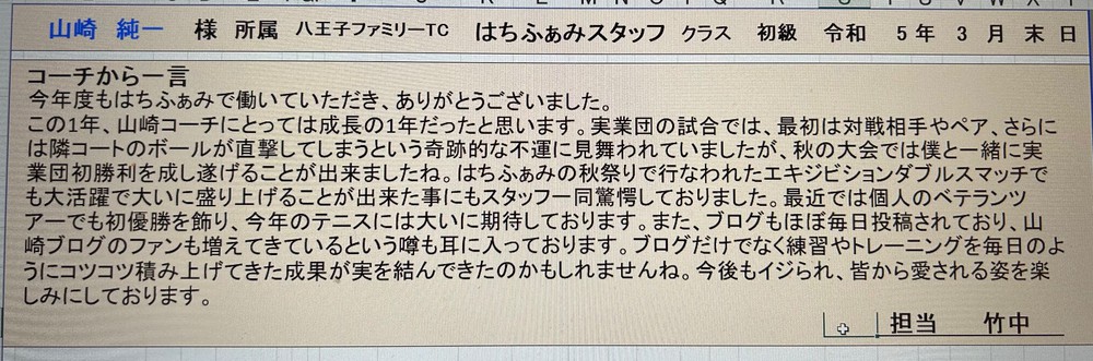 コメントを通して、春からさらにやる気を出してテニスを楽しんでいただけると嬉しいです\(^^)/