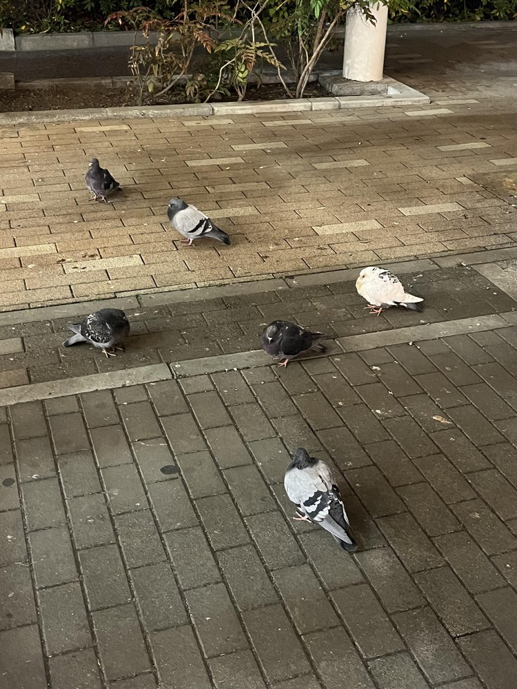 モリタウンで買い物をしているのと何やら集まっている鳩の集団が!