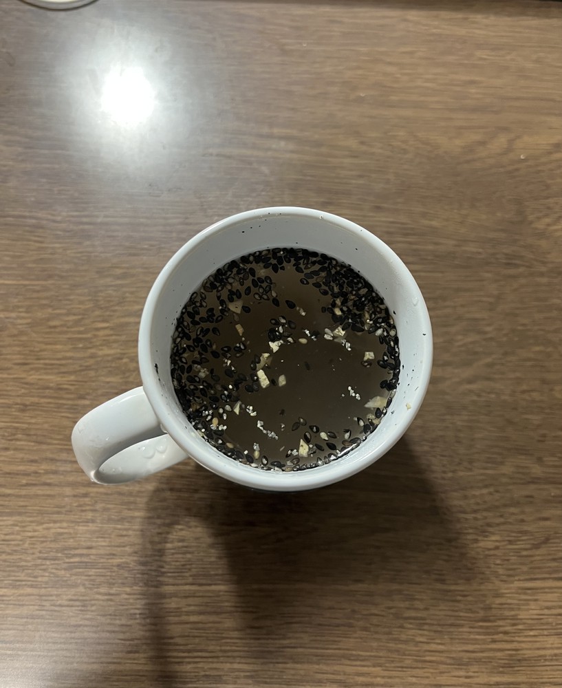 まず白湯に生姜を刻んで蜂蜜を入れて、黒胡麻をすりおろしたら完成です。
