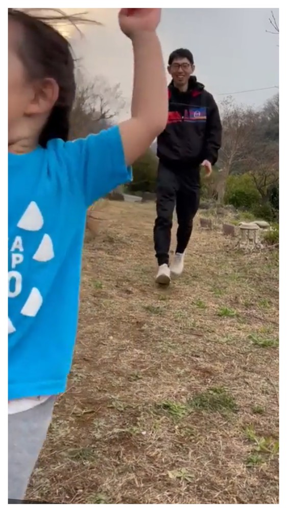 写真はうちの子供と追いかけっこしてくれている山崎コーチ