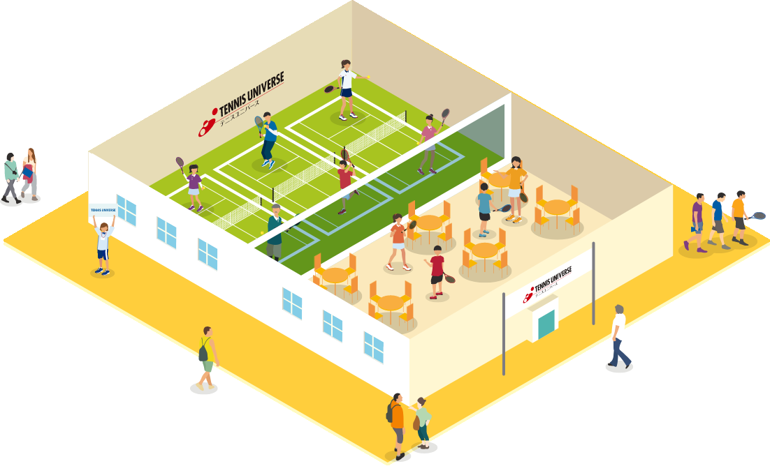 お子様の身体の大きさに合ったラケットとボール、コートの広さでテニスをすることによって、楽しみながらスムーズにレベルアップ。自主性と協調性を養います。
