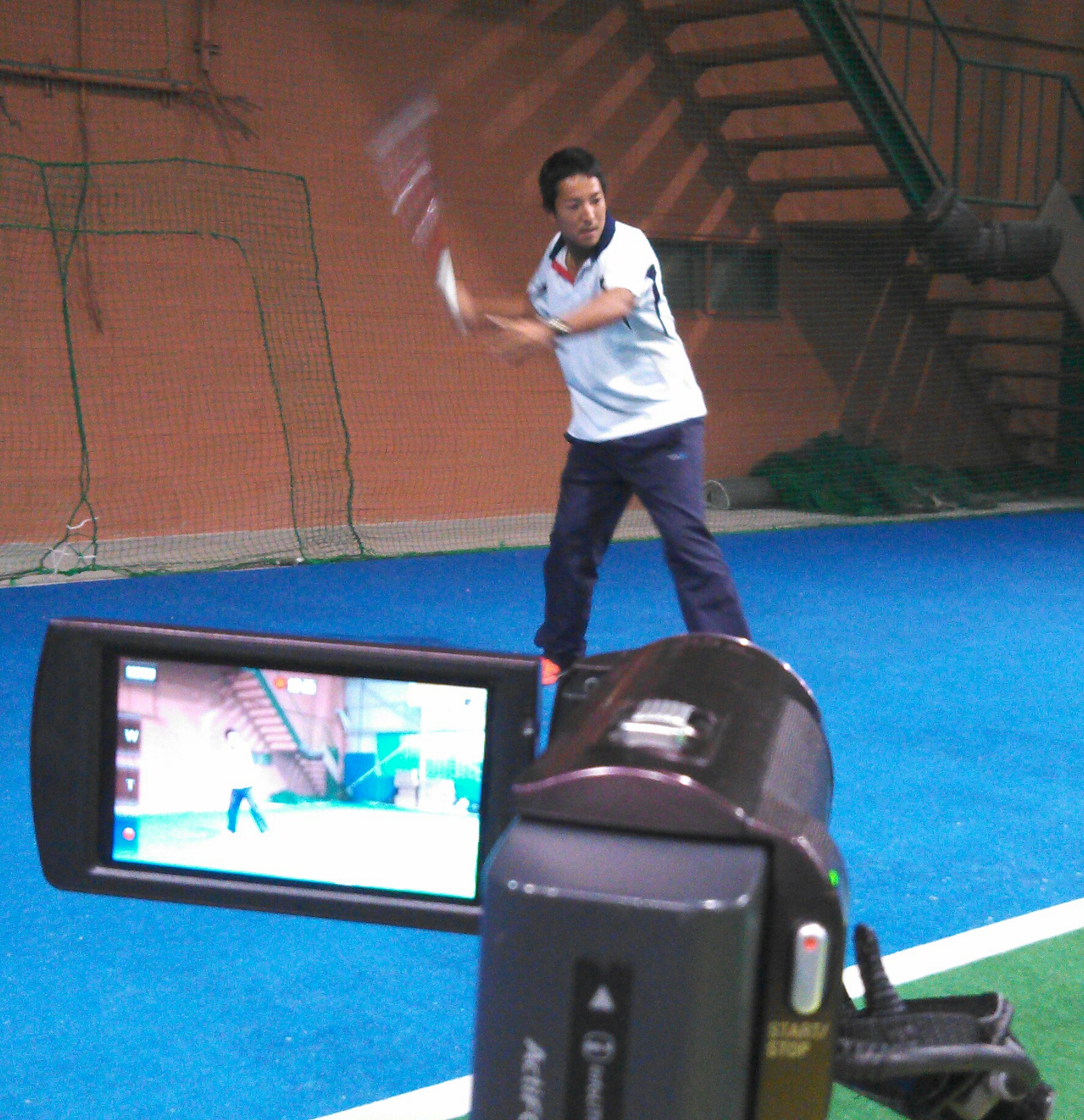 まずは前田コーチから。 左右の振りは固定して、1点だしで動きを記録していきます。