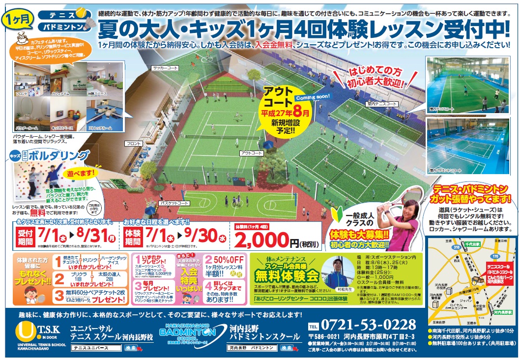 申し込みが8月31日(月)までになりますので、テニスに興味がある方は是非、河内長野に足を運んで下さいね。
