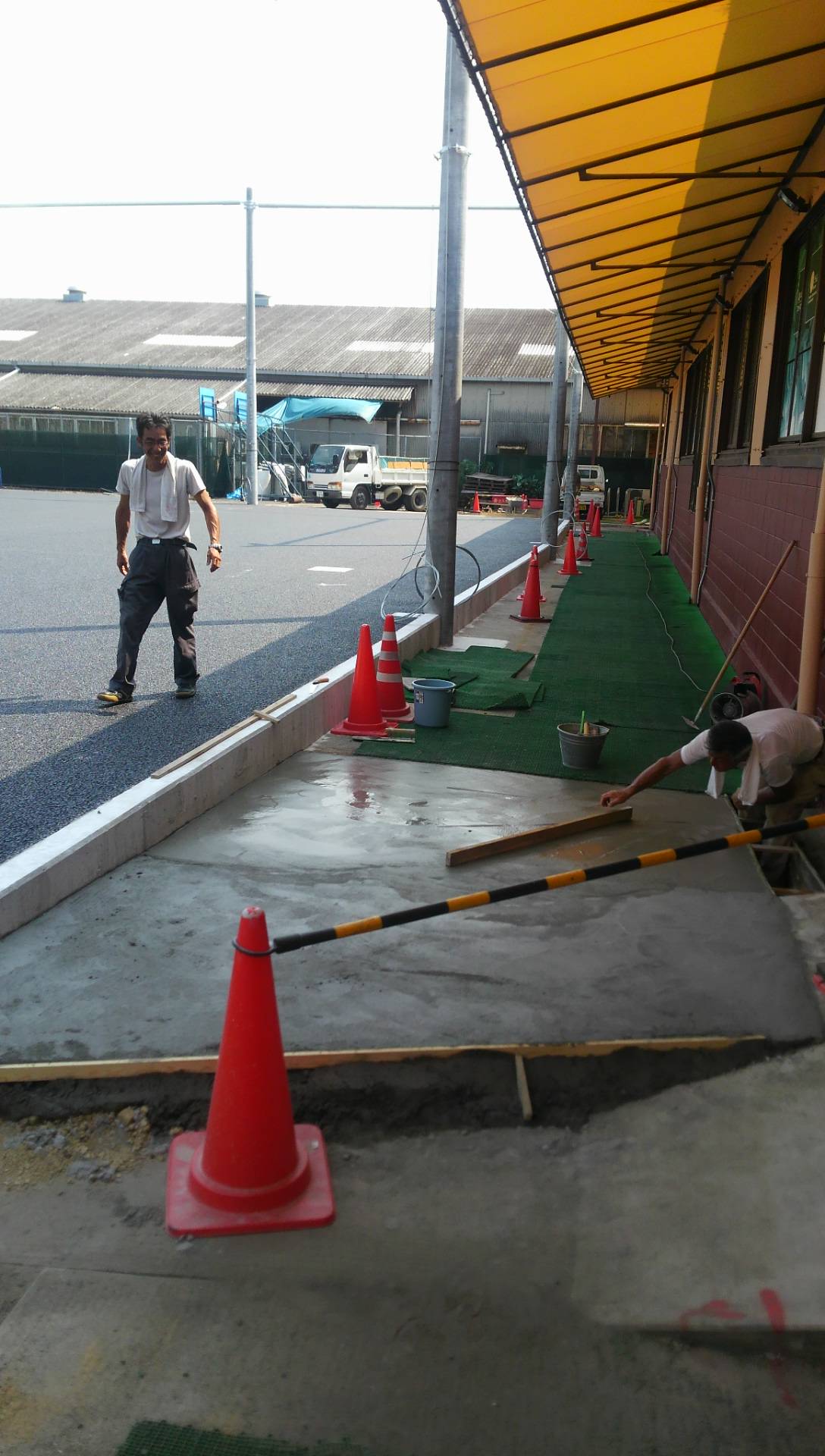 こんばんはユニバーサルテニススクール河内長野校、松下です。 本日はPLの花火(短縮営業)につき、昨日に続きのんびりと工事をしております。 職人さん達もこの笑顔です♪