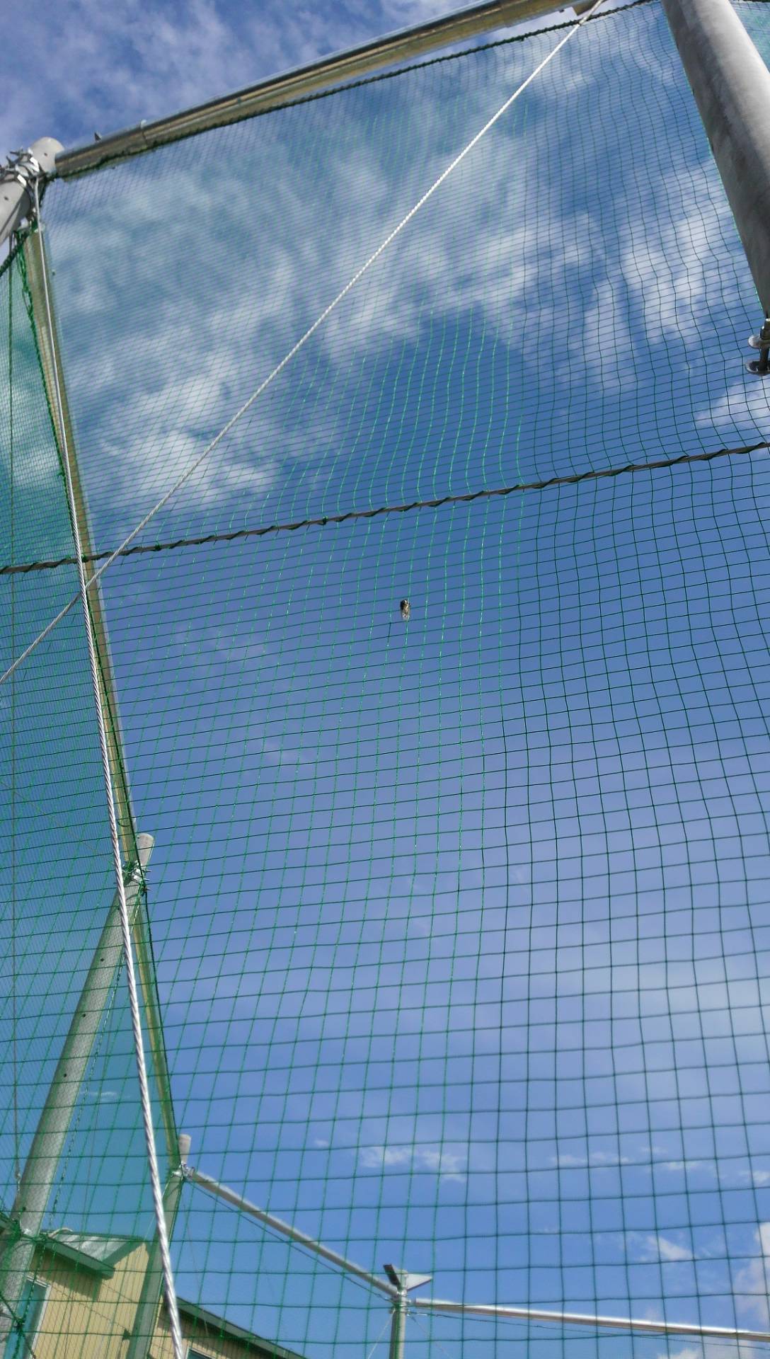 こんにちはユニバーサルテニススクール河内長野校、松下です。 取り付けたネットに蝉が一休み。