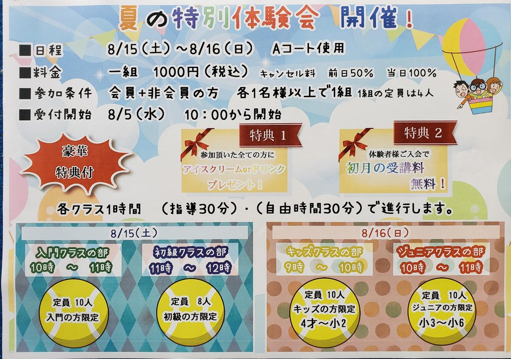8月15日、16日で体験イベントがありますので是非お友達を誘っていらして下さいね。お待ちしております!