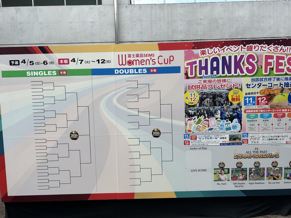 さてさて、少し前に靱テニスセンターで行われている富士薬品セイムス ウィメンズカップを見に行ってきました。
