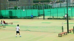 テニスユニバース男子実業団チームを日本リーグへと押し上げた原動力となった二人田村和也 vs 羽生沢哲朗(昭和の森)のシングルス対決と坂井・羽生沢対佐藤・田村のダブルスマッチを行いました。