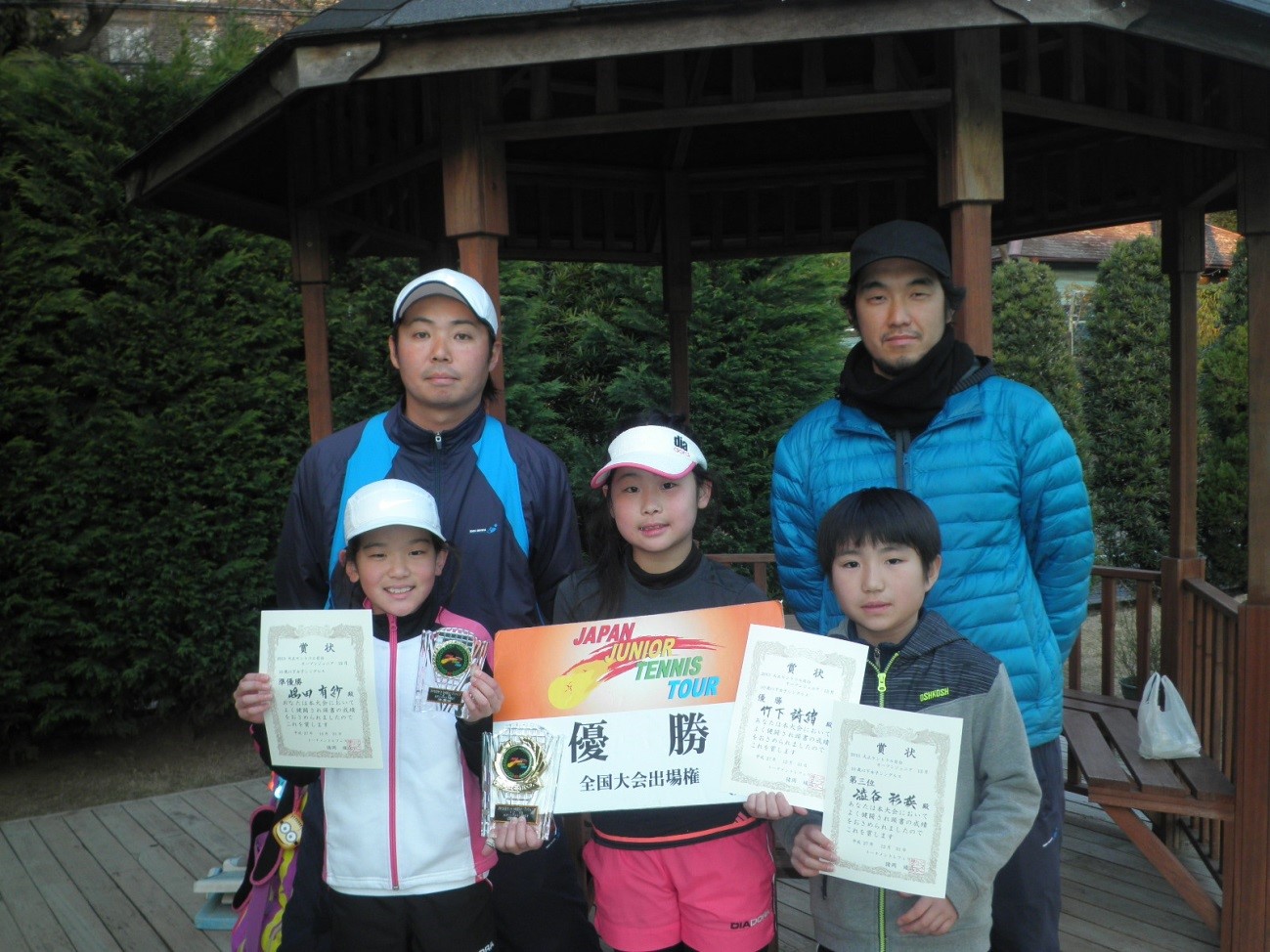 昨年末に行われたジュニアのJOP大会(大正セントラル目白オープン)で、10歳以下の部男子女子共に、我がSJクラスのメンバーが優勝、さらに上位独占という素晴らしい成績を上げることができました。