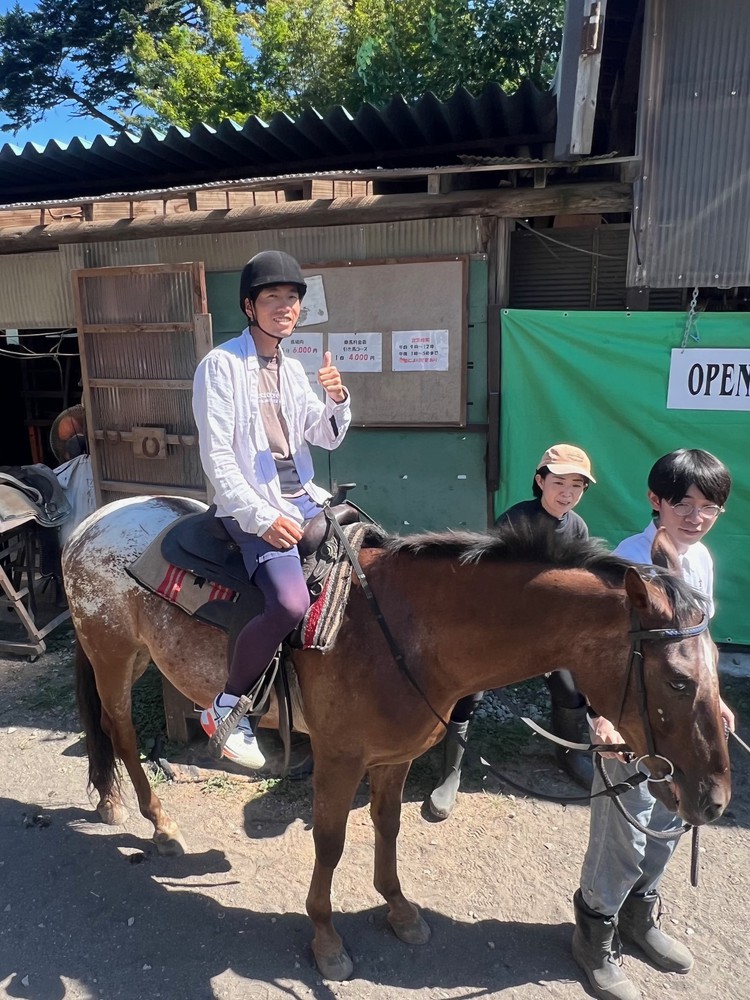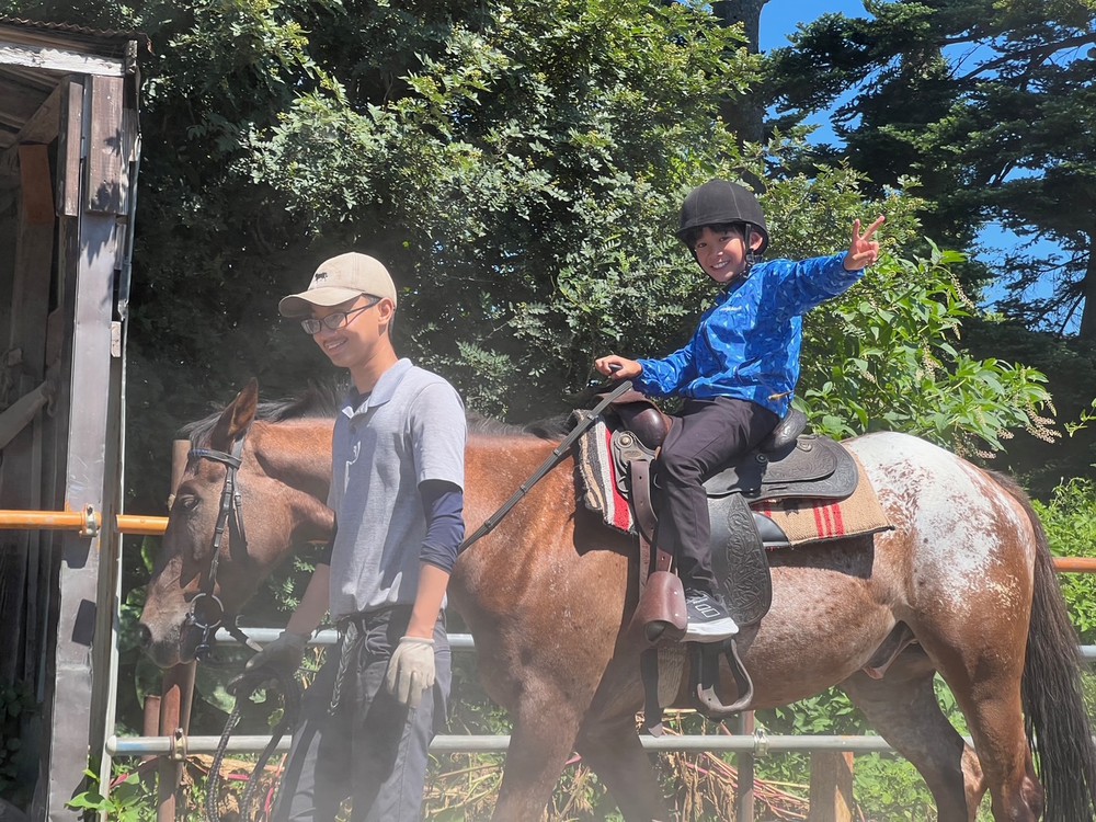 昼食後はお楽しみの乗馬体験!思わずこの決めポーズ!!!