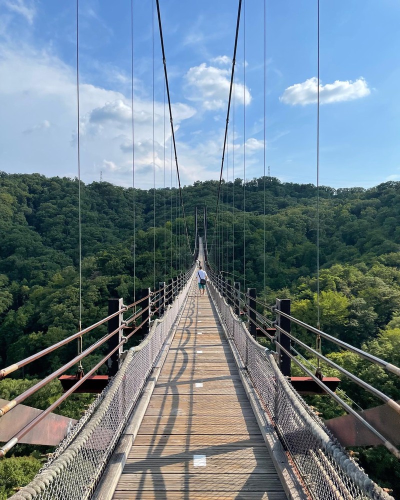 全長280mもある大きな吊り橋があるのですが、駐車場から30分ほど山登りをしないと行けなくて、全身がかなりやられてしまいました(笑)