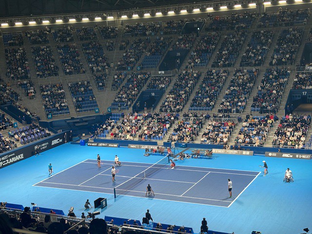 錦織選手、ダニエル太郎選手、国枝選手、小田凱人選手、上地結衣選手など日本のトップ選手が集まりシングル、ダブルス、ミックスダブルスNEWミックスダブルス(車椅子テニスも関係なくダブルス)と様々な組み合わせの試合をチームに分かれて試合を沢山していました!