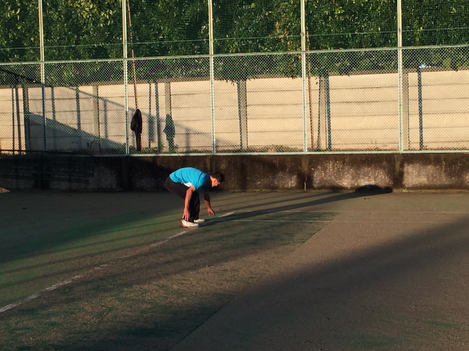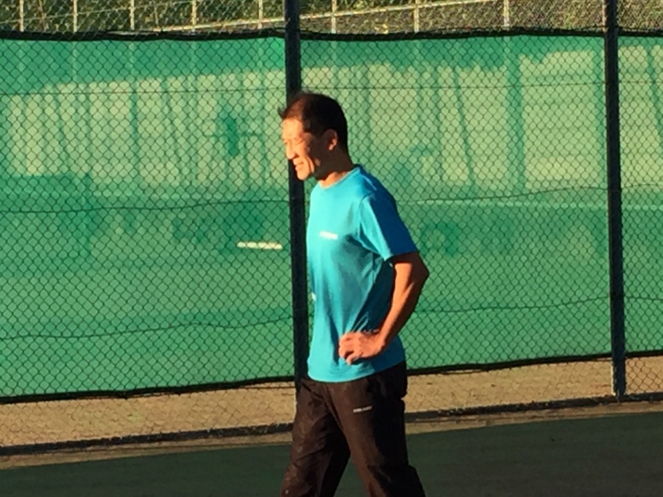 今日、朝の6:45にコートに到着したら、一人ラインタッチをする怪しい人影が・・・・