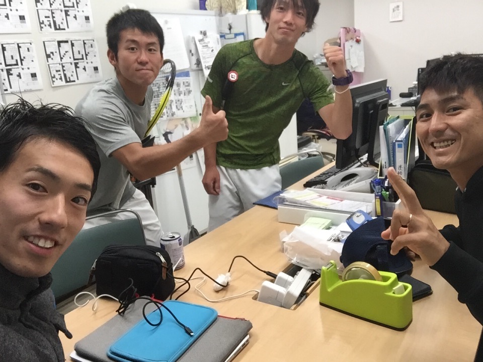 テニスバカが、テニスについて語るのは、何もコート上だけではありません。 コーチ室でも・・・ 本日は、千田コーチのサーブについて。 千田「僕、サーブわかりました!!!こうですよね?」 比嘉「お前、全然違うよ。こうだよ」 伊藤「いやこうでしょ?」 川上「あっこういうことっすか?」 仕事しろーーー!!